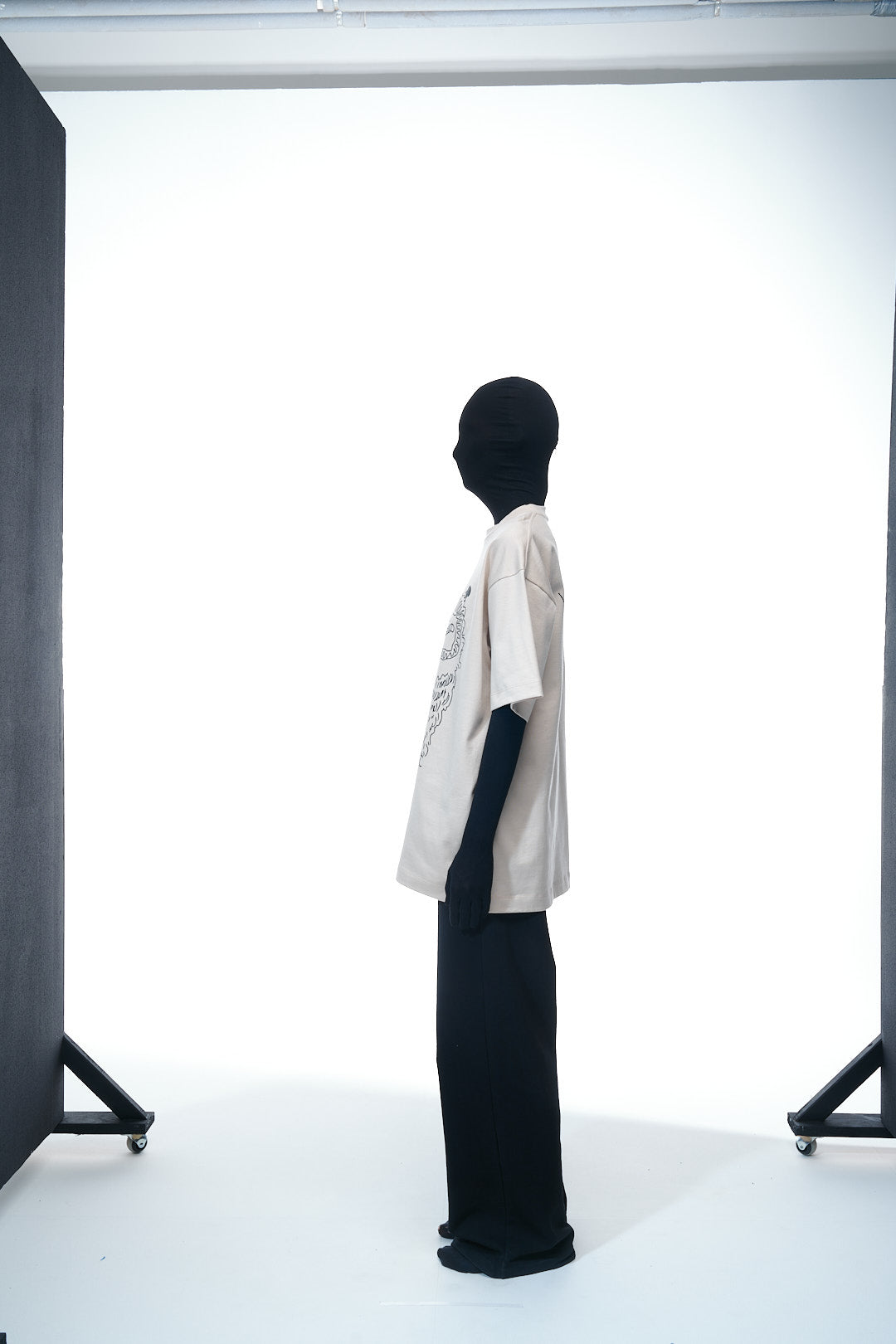 Printed hand-drawn graphic at center front "Eat Human Flesh" detail