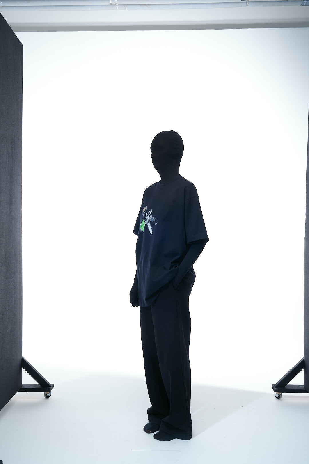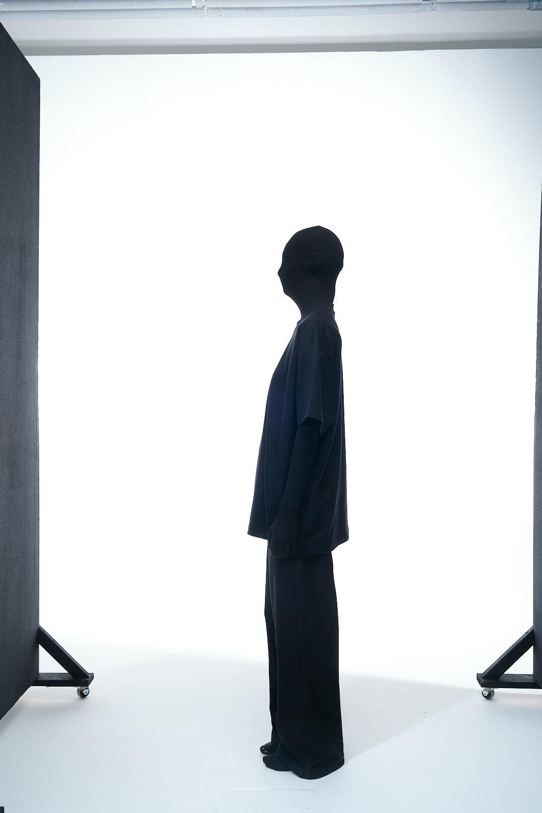 Minimal phrase centered under the back neckline: “This piece has clearly preserved the marks of what stepped on it”