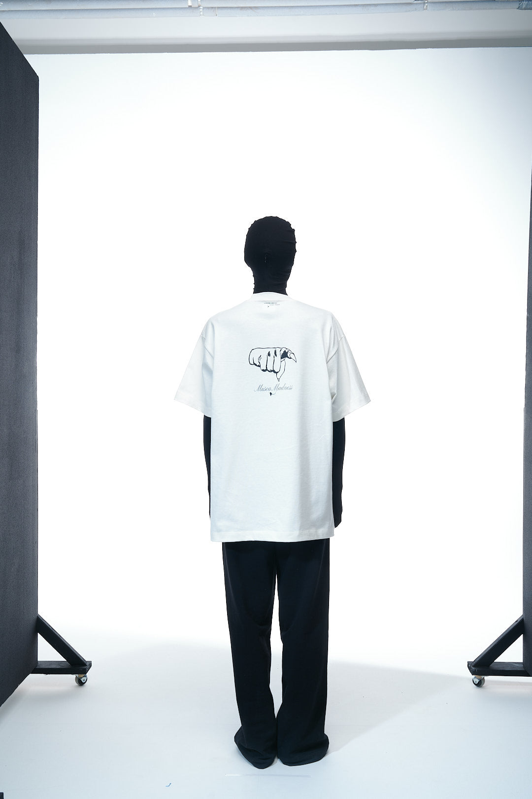Printed hand-drawn illustration of a clawed finger pointing down, accompanied by the phrase “Musca Madness” at the back